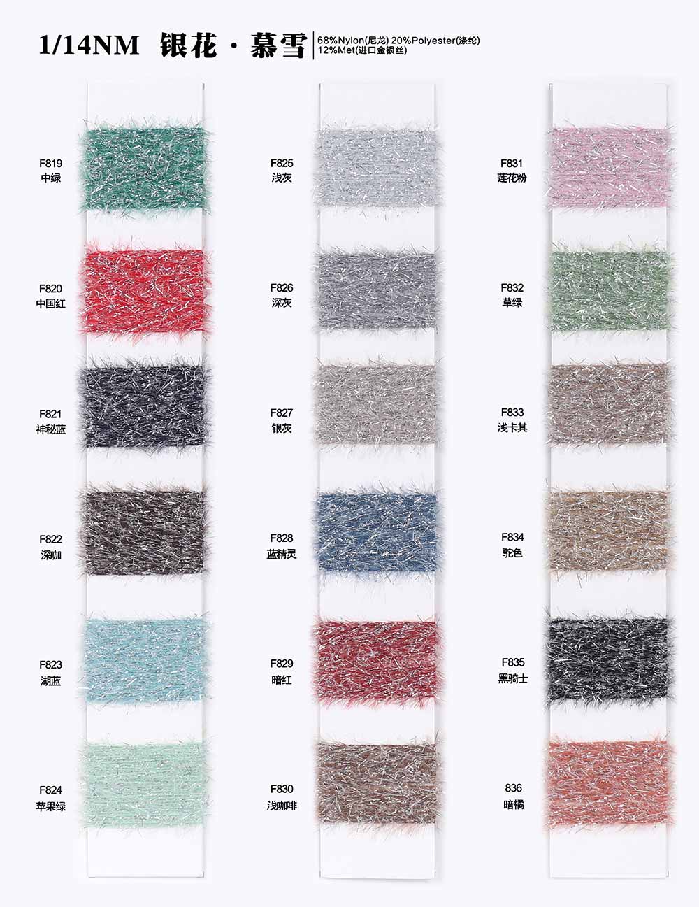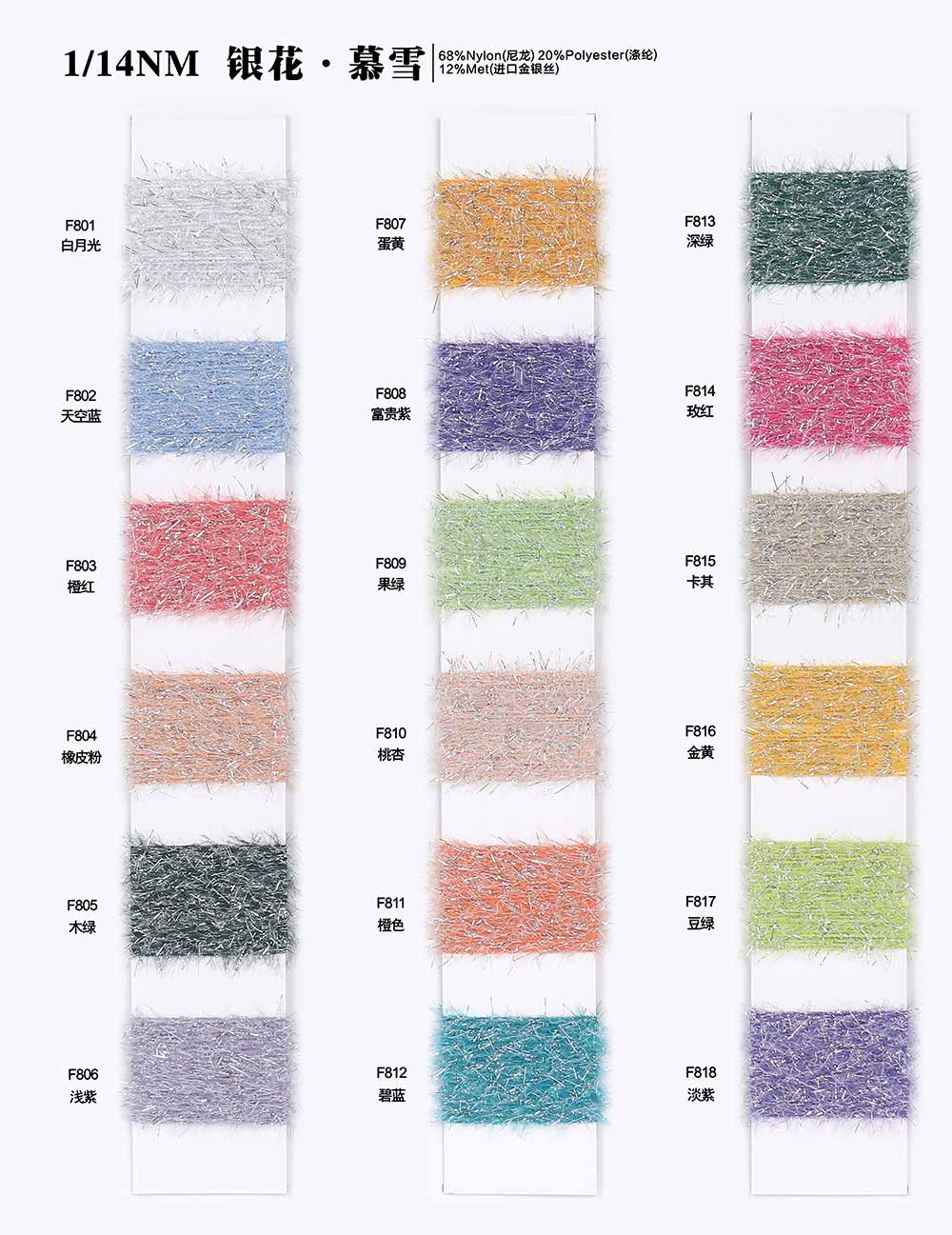 68%尼龙Nylon 20%涤纶Polyester 12%进口金银丝Metallic