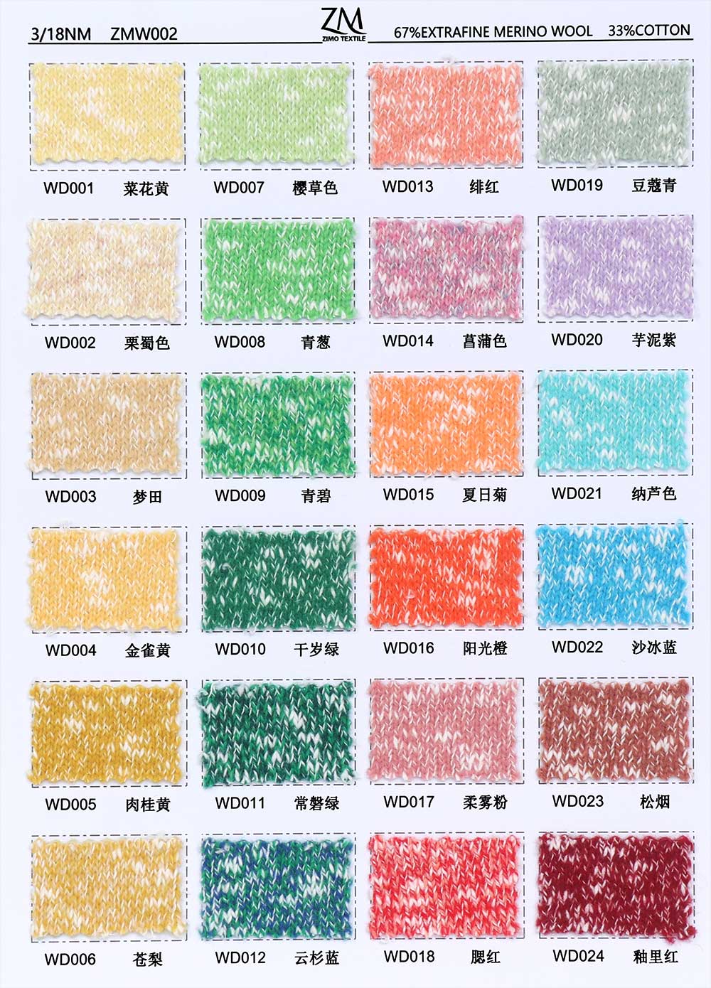 67%超细美利奴羊毛Extrafine Merino Wool 33%棉Cotton