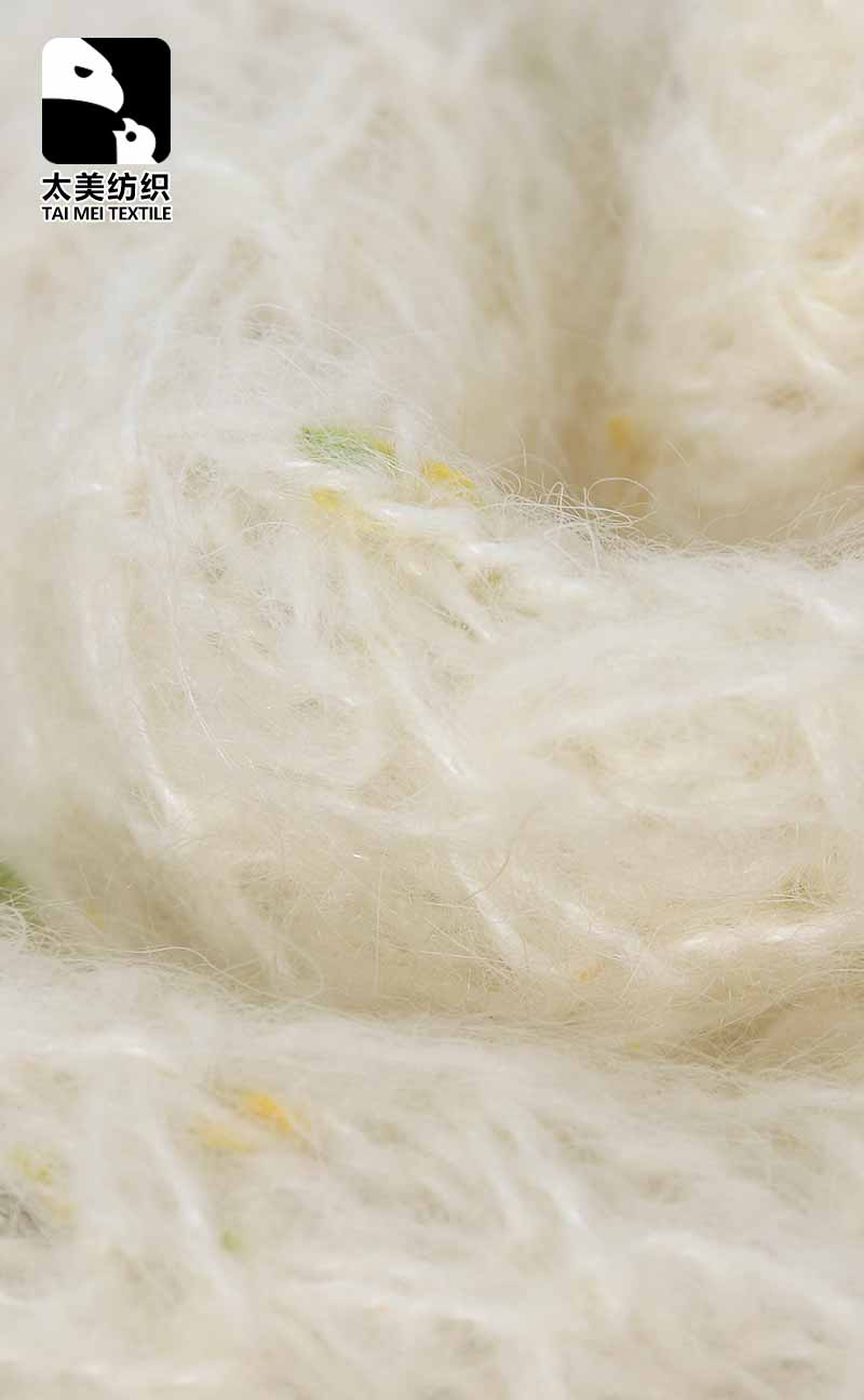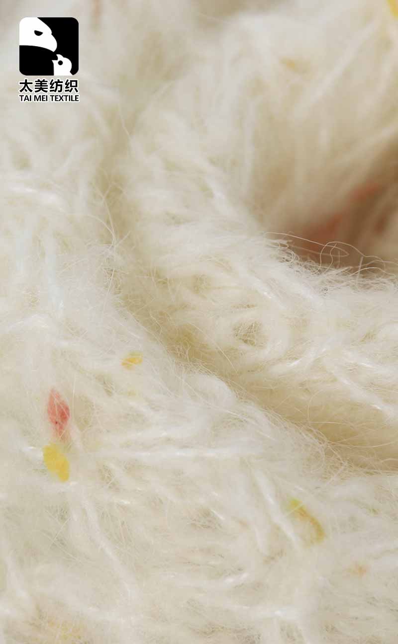 8%马海Mohair 38%羊毛Wool 44%尼龙Nylon 6%腈纶Acrylic 2%涤纶Polyester 2%彩绒Coloured velvet