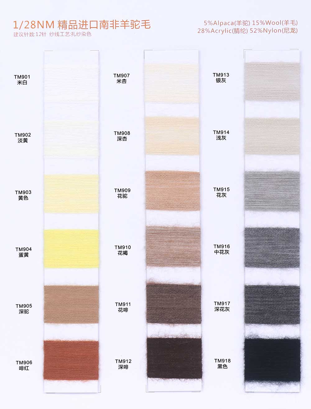 5%羊驼Alpaca 15%羊毛Wool 28%腈纶Acrylic 52%尼龙Nylon