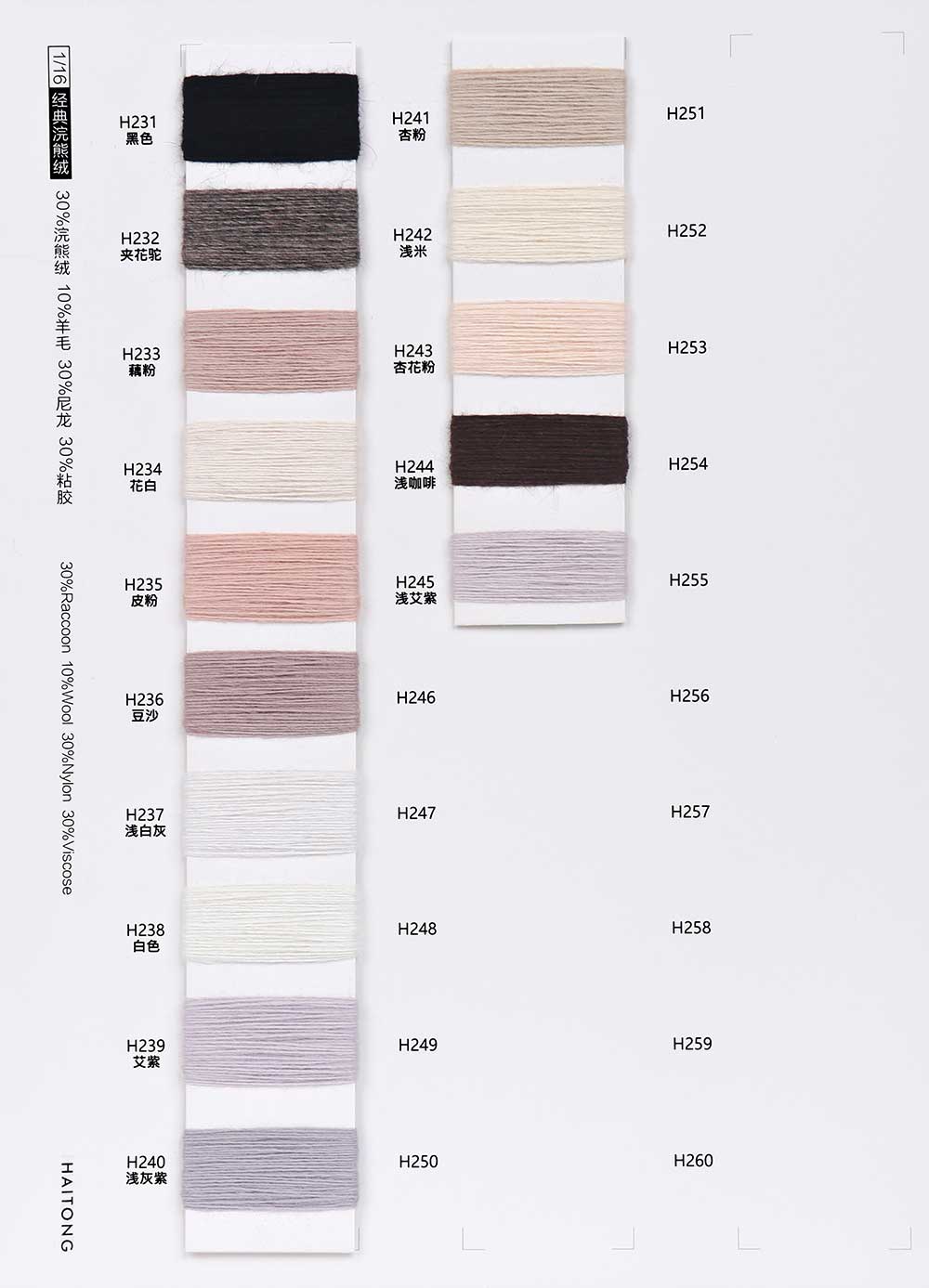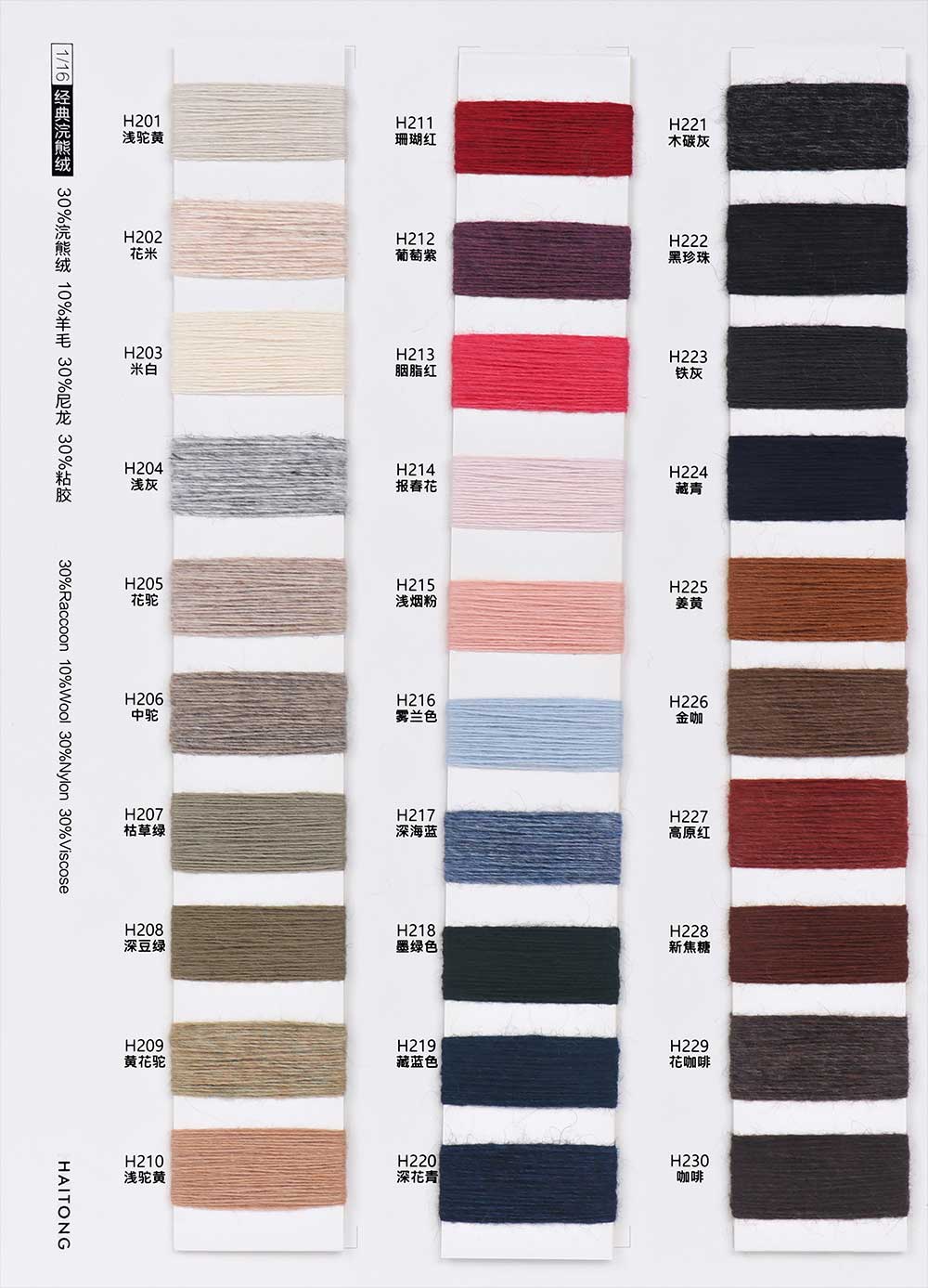 30%Raccoon 10%Wool 30%Nylon 30%Viscose / 40%Raccoon 15%Wool 25%Nylon 20%Viscose
