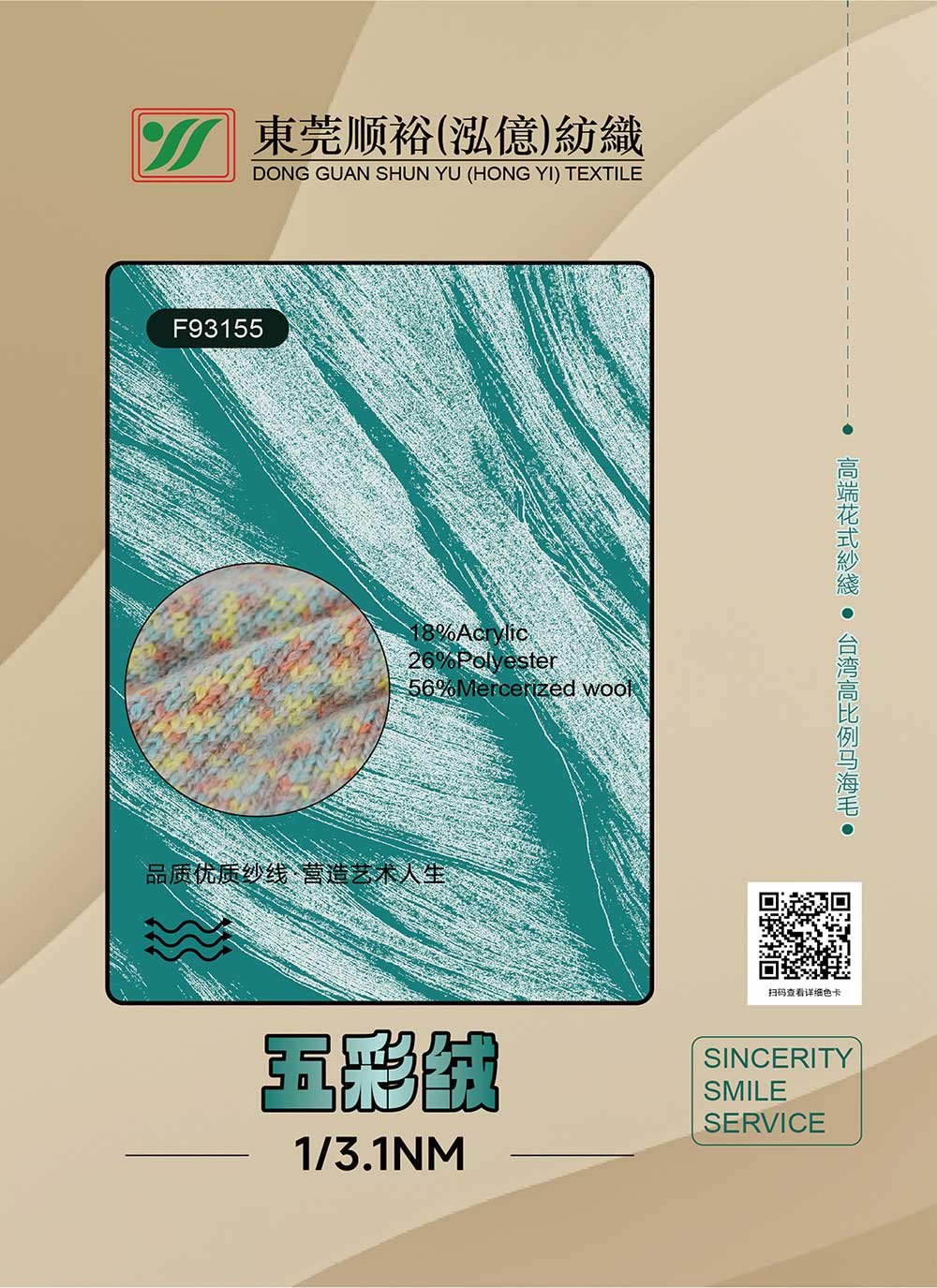 18%腈纶Acrylic 56%丝光羊毛Mercerized Wool 26%涤纶Polyester